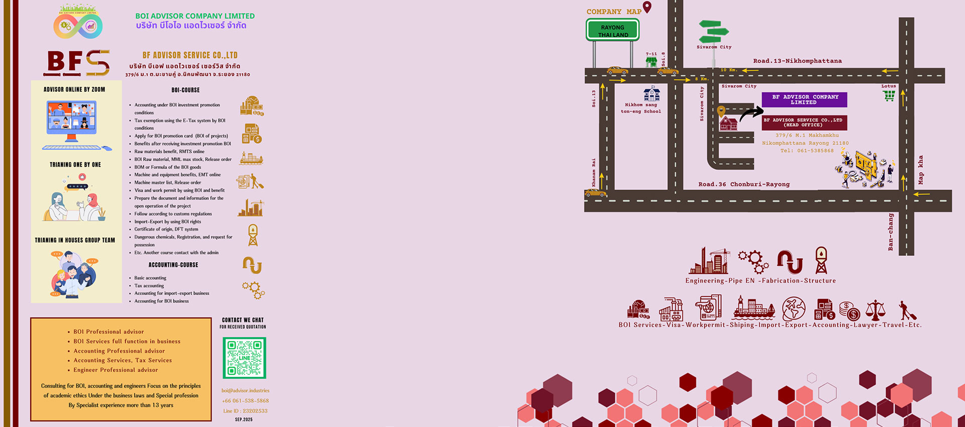 1.Preparing documents for government promotion applications, such as applying for benefits under the BOI (Office of the Board of Investment) investment promotion card, etc.